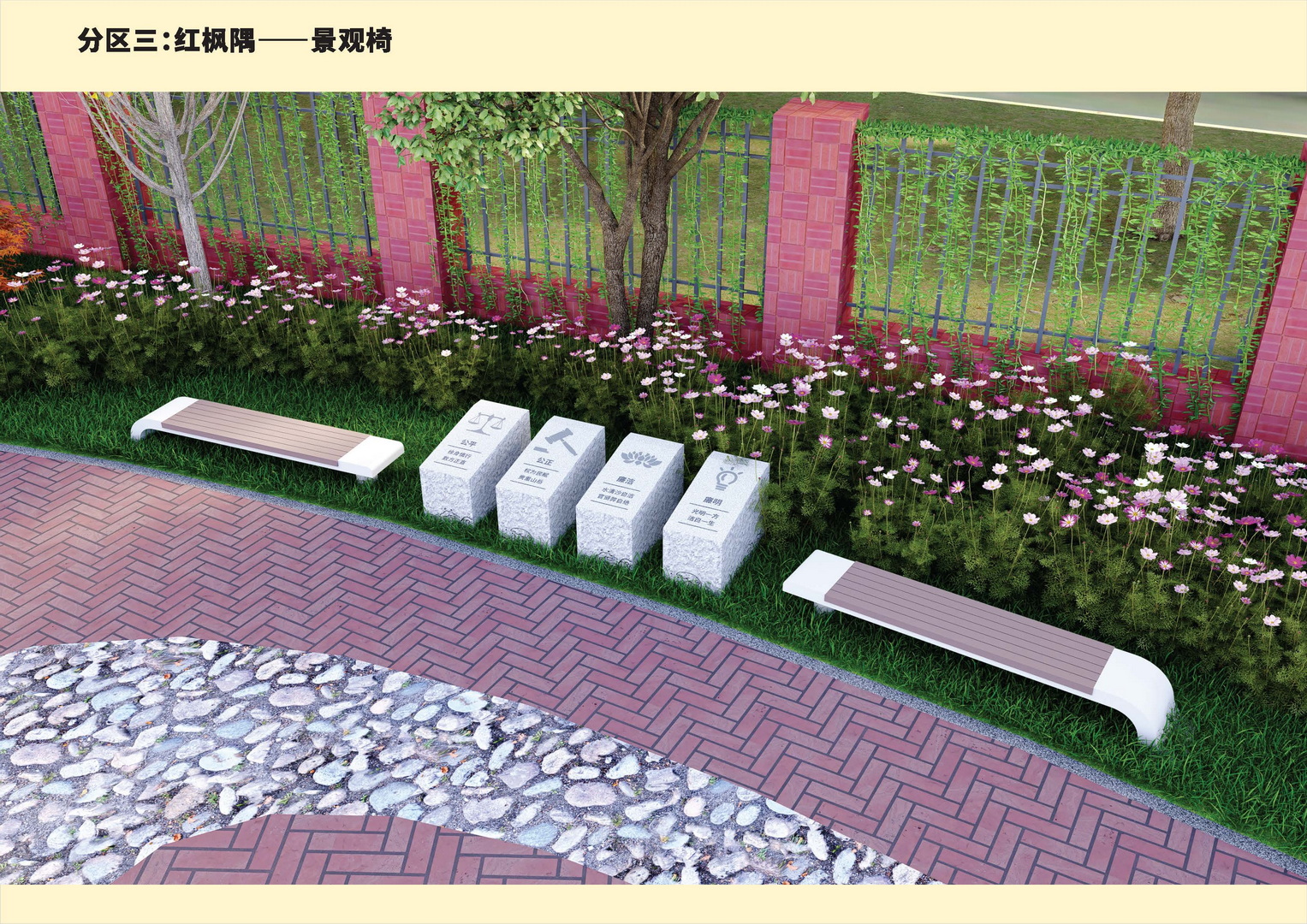 焕扬本次原理设计有凉亭、石桌石椅、四季花草树木、景观人文标识等景观文化,师生们在工作学习之余可以在里面放松心情、闲情交流,也可以选择在里面交流学术知识,优美舒适的环境更有助于工作学习的效率提升。